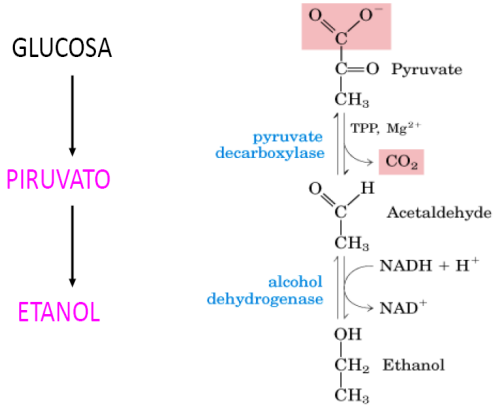 Cuando se da la degradación del piruvato en tejidos carentes de mitocondrias, o en hipoxia, en ven de oxidarse en CO2 y H2O, el piruvato servirá para generar NAD para la glucólisis.
