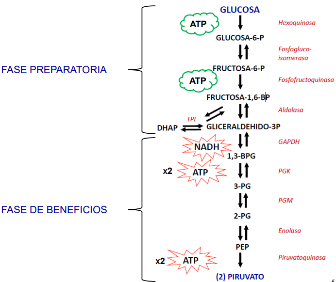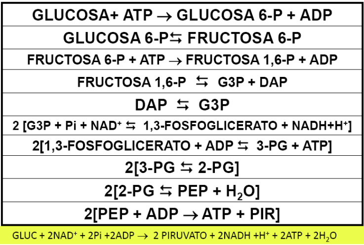 Proceso oxidativo por el que la glucosa (6C) se rompe en 2 moléculas de piruvato (3C).
