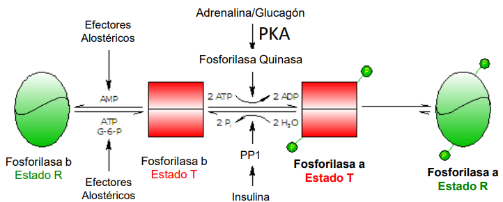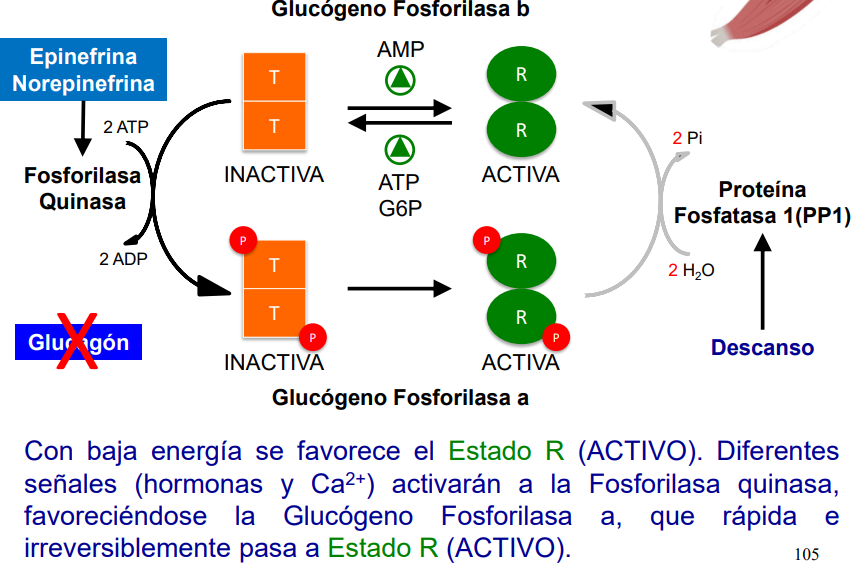 Glucógeno → inactivará la fosfatasa permitiendo los procesos