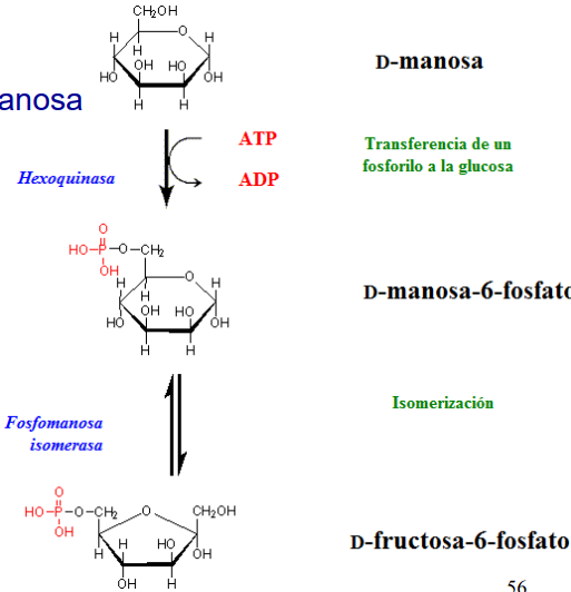 Catalizada por la fosfohexosa isomerasa, que promueve la apertura del anillo de la piranosa, la isomerización de aldosa a cetosa y su ciclación en forma de furanosa.