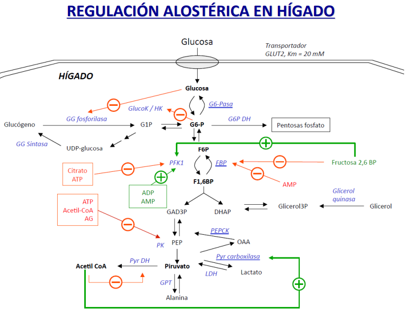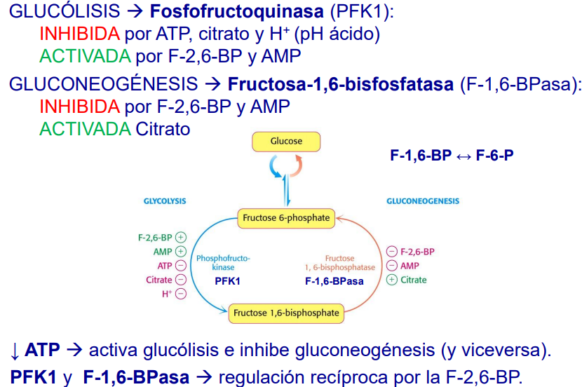 F-1,6-BP → modulador alostérico positivo (sintetizada a partir de piruvato).