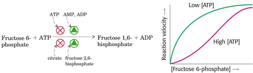 ATP → modulador alostérico negativo (indica que ya hay energía)