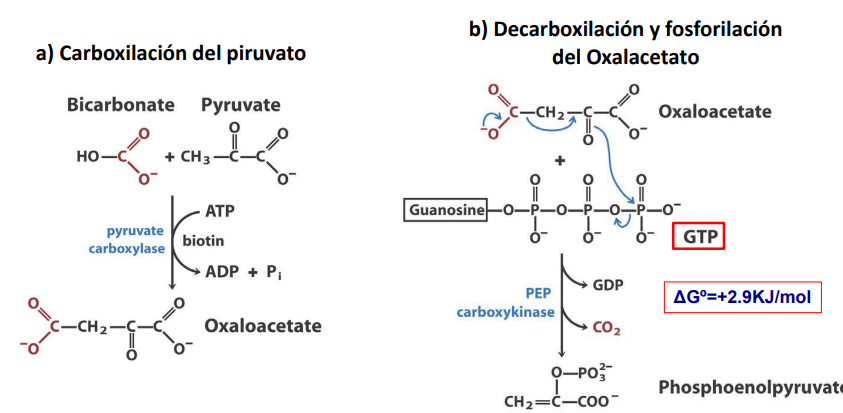 Es una reacción reversible que conlleva la producción de fosfoenolpiruvato (PEP), un compuesto rico en energía.