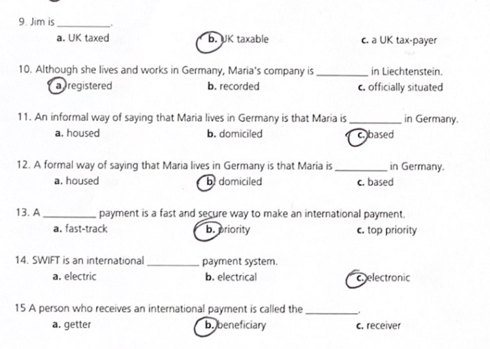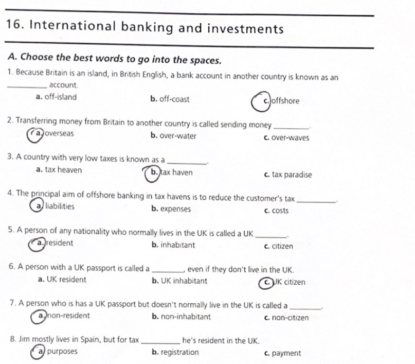 International banking and investments worksheet