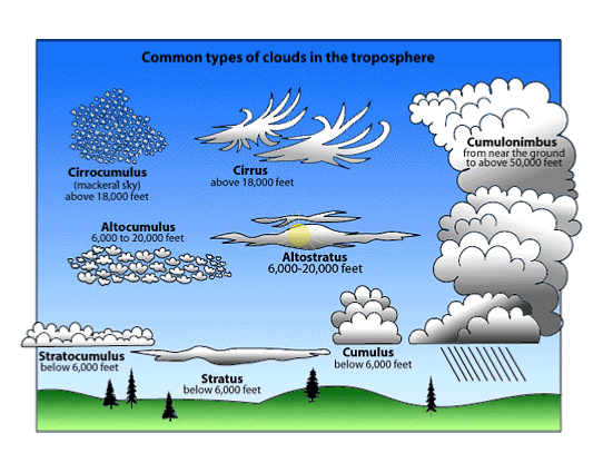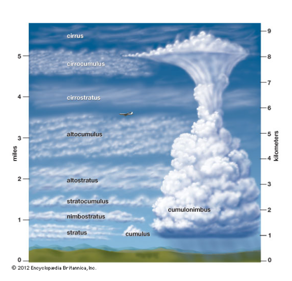 - Clouds: Condensed water/ice too small to fall to the ground.