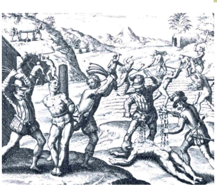 portrays the Spanish as evil. “See what they did to the native population, they enslaved them, they tortured them, the Spanish are so cruel.”