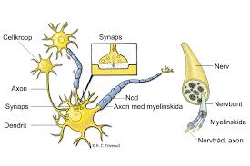Axon och myelin : Platser för mottagning av nervsignaler, fettlösligt