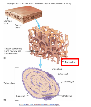 Spongy bone - consists of interconnecting rods or plates of bone called trabeculae.