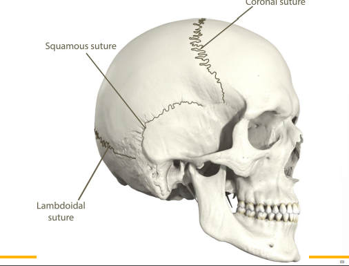 Temporal bones - inferior to parietal bones on each side of the cranium; Temporomandibular joint