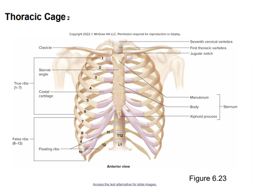 Thoracic cage 1- protects the vital organs; 12 pairs of ribs