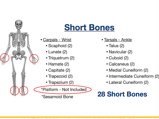 Short - wrist and ankle bones; are approximately as wide as they are long