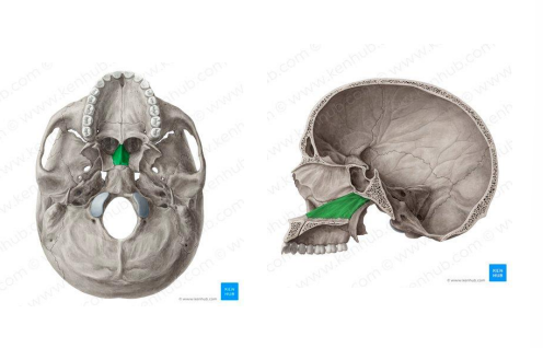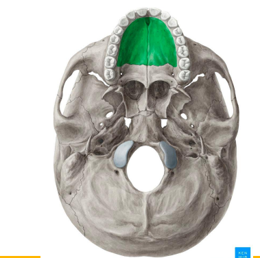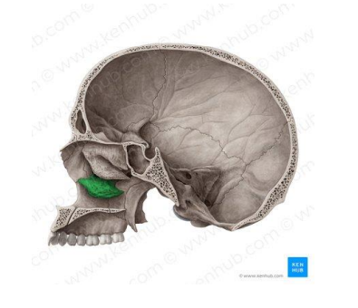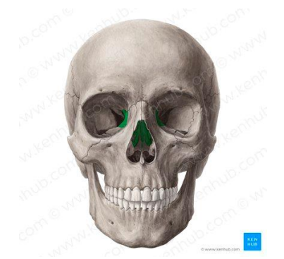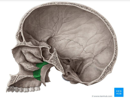 Palatine bones - forms posterior portion of hard palate, lateral wall of nasal cavity.