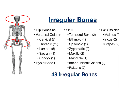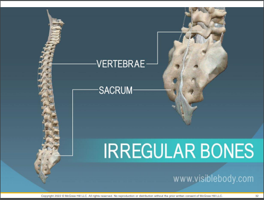 Irregular bones - vertebrae & facial bones; have shapes that do not fit readily into the other 3 categories.