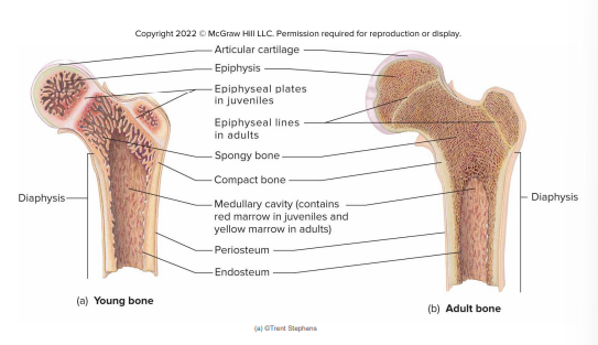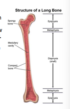 Diaphysis- is the center portion of the bone which is composed of compact bone surrounding a hollow center called the medullary cavity.