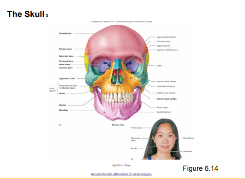Frontal bone - anterior part of cranium, the ‘forehead’