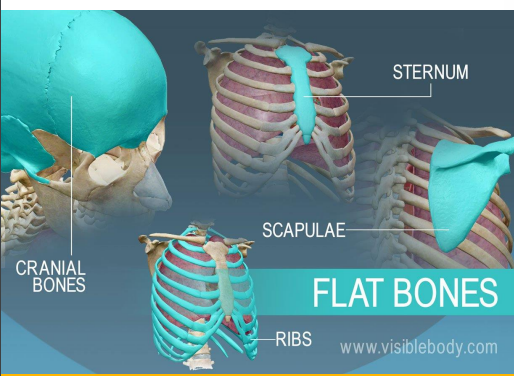 Flat - skull and sternum; has a relatively thin, flattened shape.