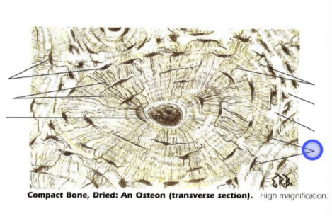 Lacunae- where osteocytes are located in spaces between the lamellar rings.