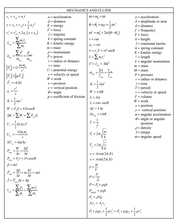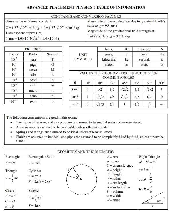 AP Physics 1 Formula Sheet