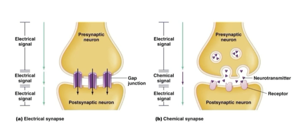 Neurons transmit their signals at electrical or chemical synapses