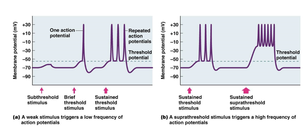 Stronger the stimulus, the higher frequency of action potentials