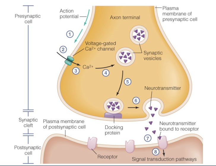 released at pre synapse following depolarization