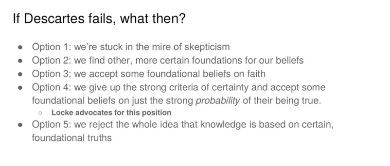 Option 4: we give up the strong criteria of certainty and accept some foundational beliefs on just the strong probability of their being true