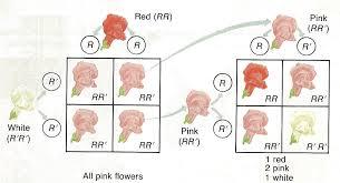 It is like mixing paints, Red + White will make pink. Red doesn’t totally block the pink like it would with typical dominance rules, instead there is incomplete dominance, and we end up with something in between.