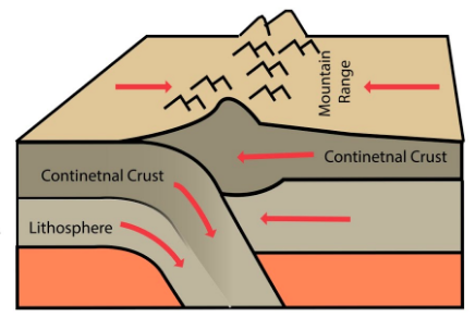 e.g The Andreas Mountains. The Nazca Plate (heavier) slipped under the South American Plate (lighter).