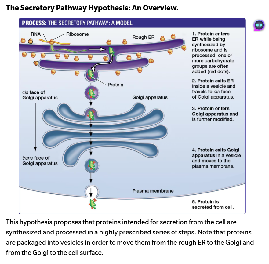 Proteins are trafficked through the secretory pathway in a highly organized and directed manner. A secretory pathway exists and the rough ER and Goldi apparatus function together as parts of an integrated endomembrane system.