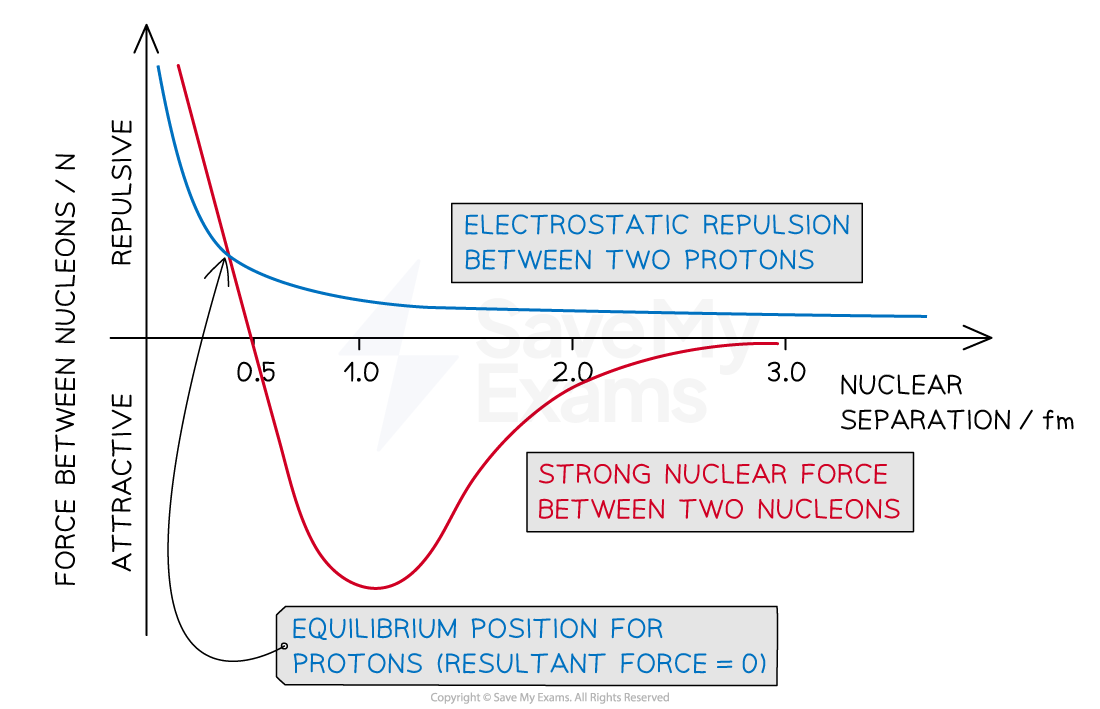 Strong nuclear force: Binds atomic nuclei together. Works over very small distances (femtometres).