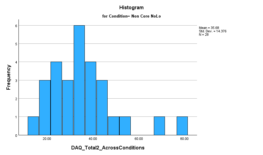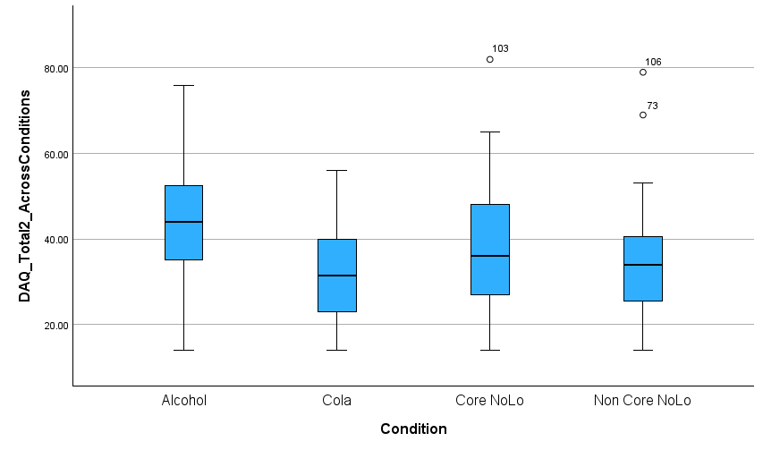 outliers above top whisker for core and non core NoLo conditions