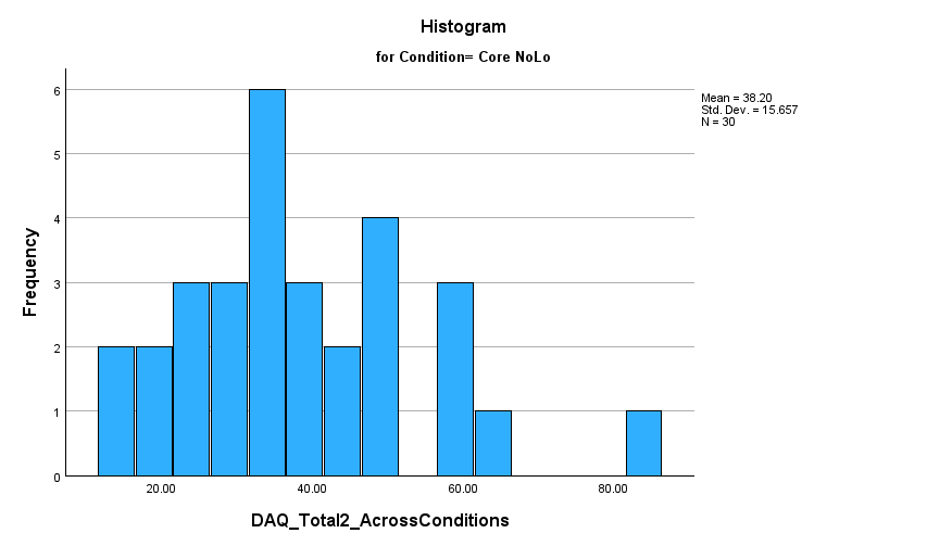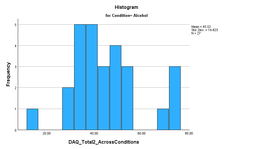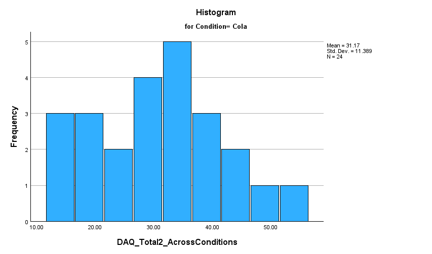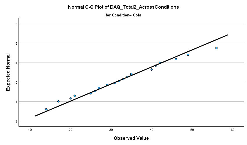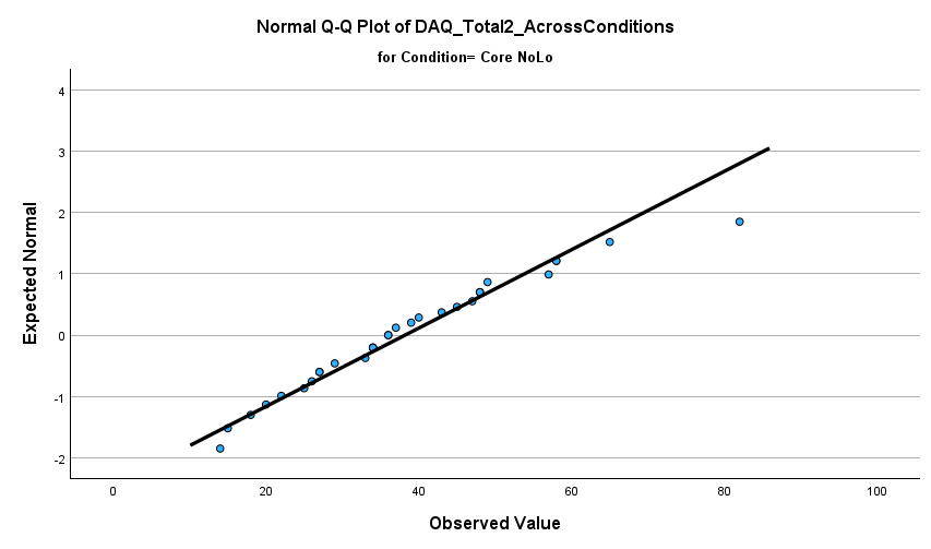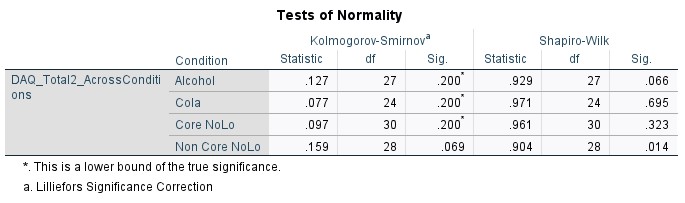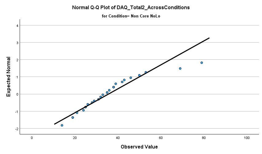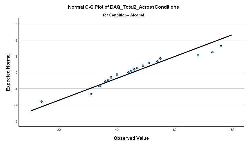 looking for a nonstatistically significant result that indicates that the dependent variable (postDAQ) for the individual level of the independent variable would be normally distributed
