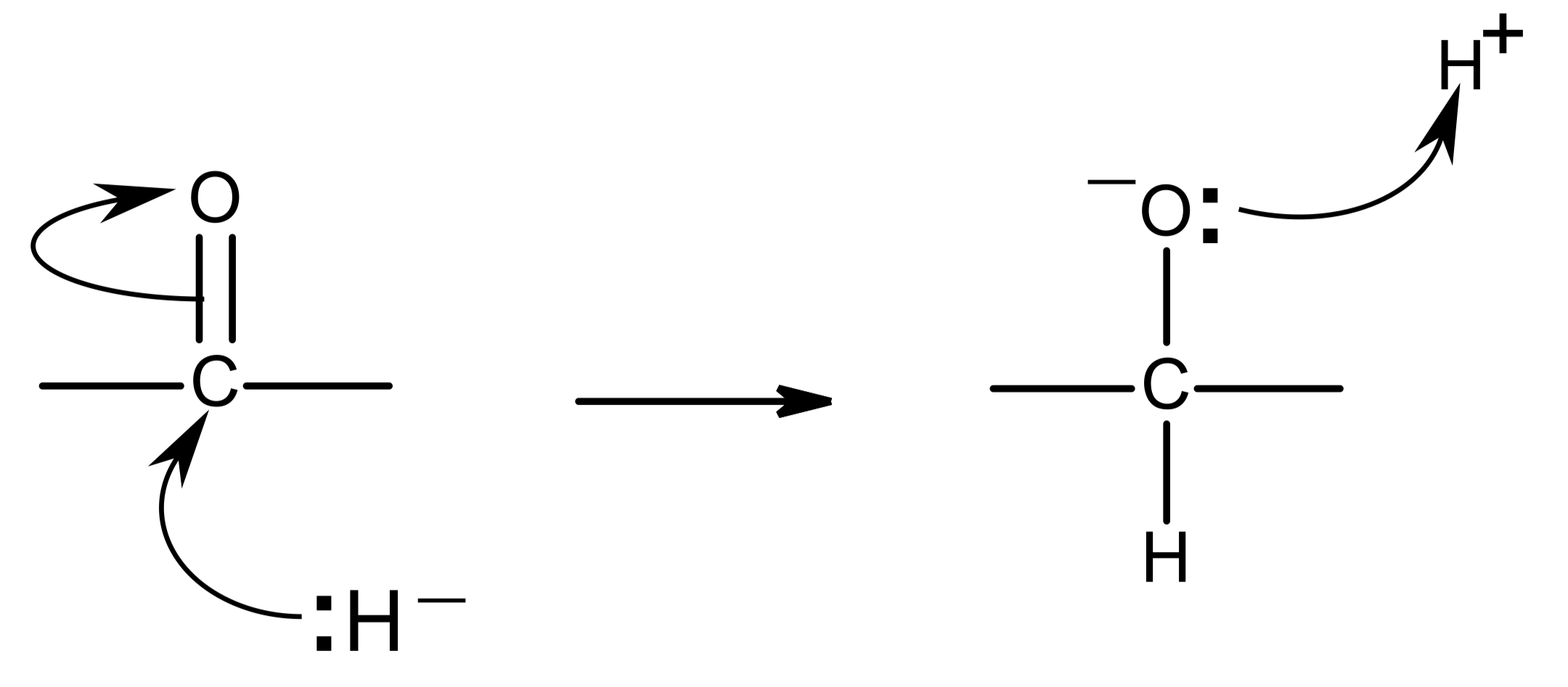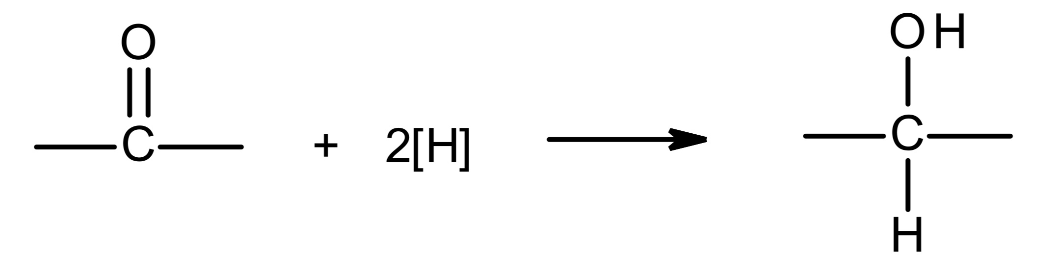 2 H atoms are added onto the C=O bond, one onto the C and one onto the O