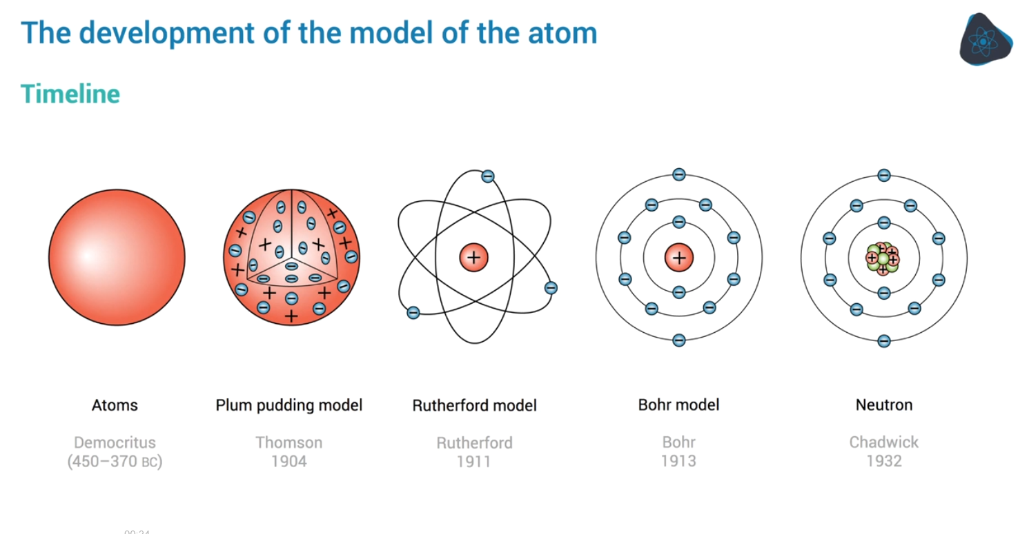 JJ Thompson (1897) discovered elections since they could be removed form atoms came up with the plum pudding model: A positive sphere with negative electrons dotted around and inside it