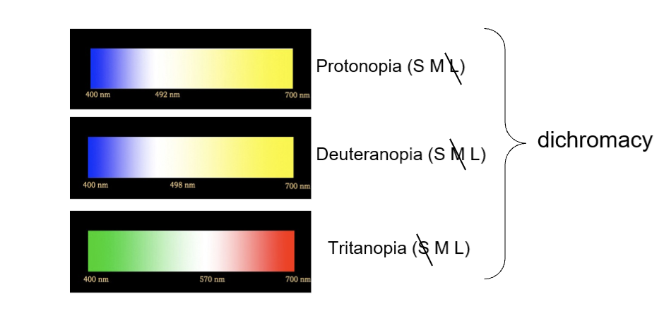 Color blindness is an inability to discriminate between colors that “normal” (trichromatic) folks can because of fewer distinct cone classes