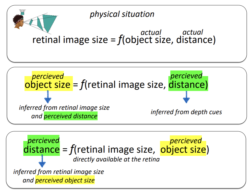 Luminance → intensity of incident light (physical) → intensity of light at the eye - retinal input (physical)