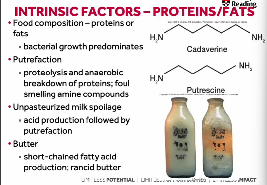 Atmosphere: The presence of oxygen facilitates growth; modified atmosphere packaging (MAP) limits oxygen availability by using shrink wrap and vacuum technologies.