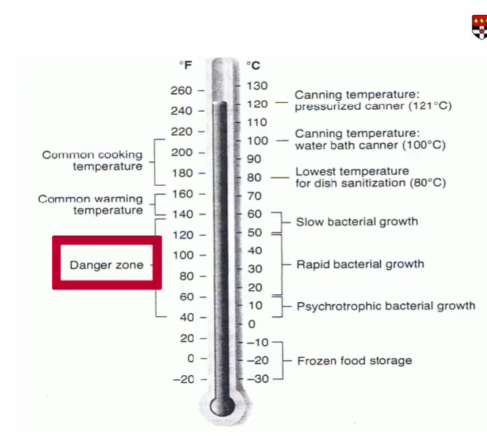 the danger zone is the temp between 5 and 60 degrees celcius.