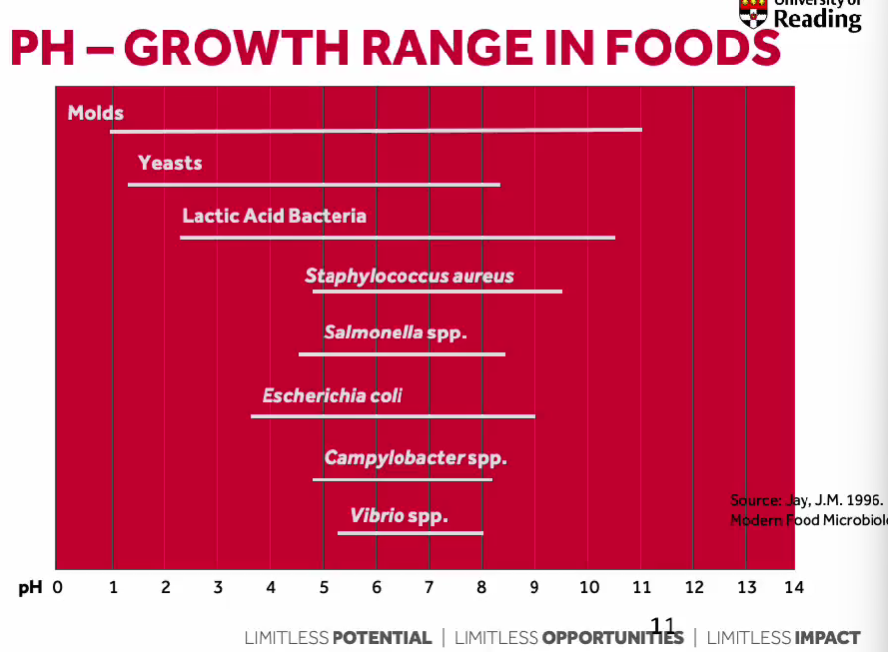 pH Growth Range in Foods