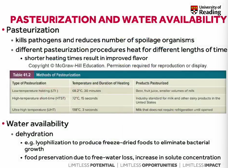 Water Availability: Dehydration techniques such as lyophilization (freeze-drying) eliminate bacterial growth.