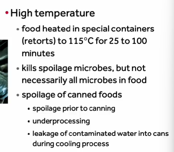 High Temperatures: Canning at temperatures of 115°C can kill spoilage organisms but may not eliminate all microorganisms.