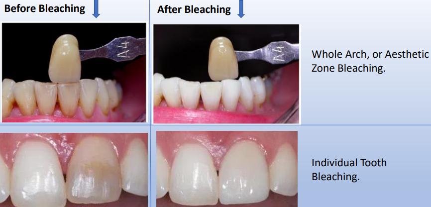 Tooth whitening can be used on an individual Tooth, or whole sections of the Dental Arch, (Aesthetic Zone).