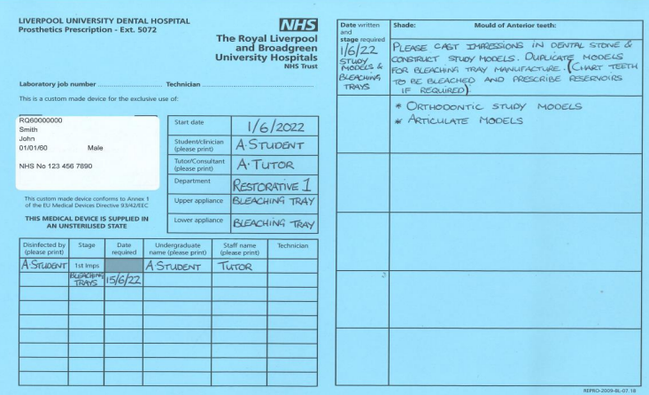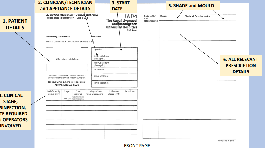 The person who completed the procedure must sign the Prescription (Lab Card), this confirms the Disinfection of items - NO WORK WILL BE UNDERTAKEN WITHOUT THIS SAFEGUARD