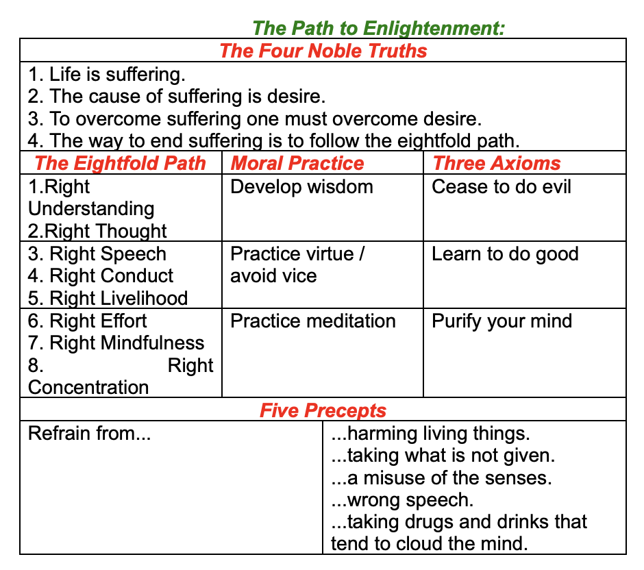 Buddhist Ethics: ethical behaviour both leads to and slows from an enlightened mind. An enlightened person acts ethically.