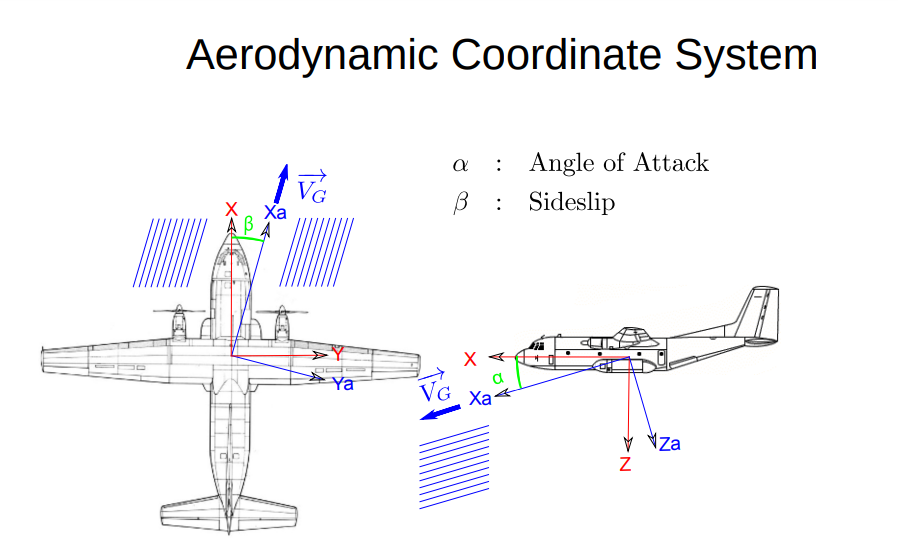 Airflow Direction: Determines the aerodynamic forces based on how the air impacts the wings in body coordinates.