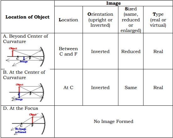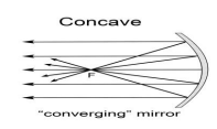 - also known as a converging mirror, has a reflecting surface which collects light inward and focuses it to one focal point. This type of mirror is what the dentist used in magnifying the area behind your teeth to check on cavities and tooth decay.