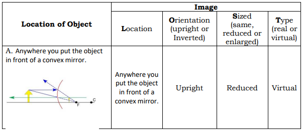 - also known as diverging mirror, is another type of spherical mirror which has the outer bulging surface that reflects light instead of the inner one. It has a wider view field compared to a concave mirror. This makes bigger objects appear to be smaller than their original form.