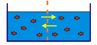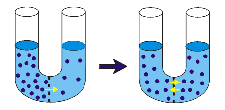 - Une substance diffuse suivant son gradient de concentration, c.-à-d. de la zone la plus concentrée vers la zone la moins concentrée jusqu’à l’atteinte d’un équilibre entre les concentrations.