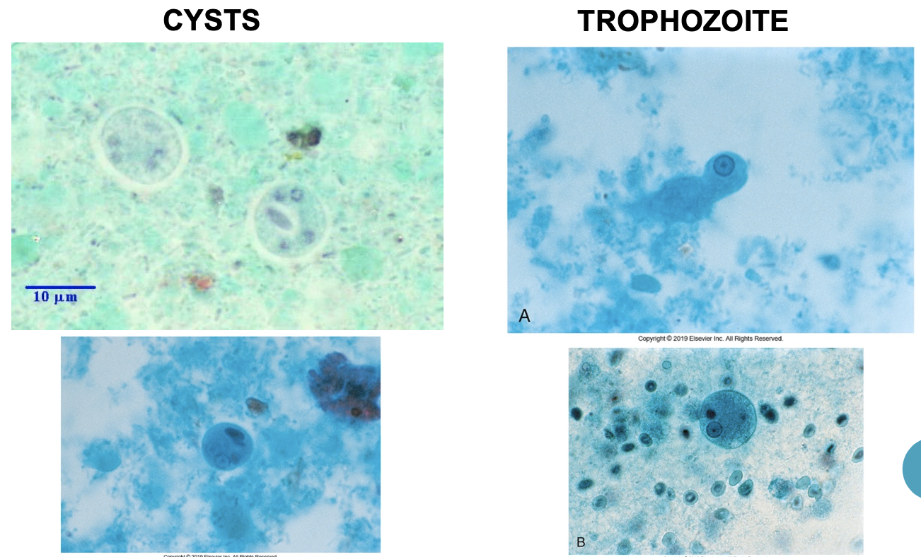 - trophozoites or cysts in feces