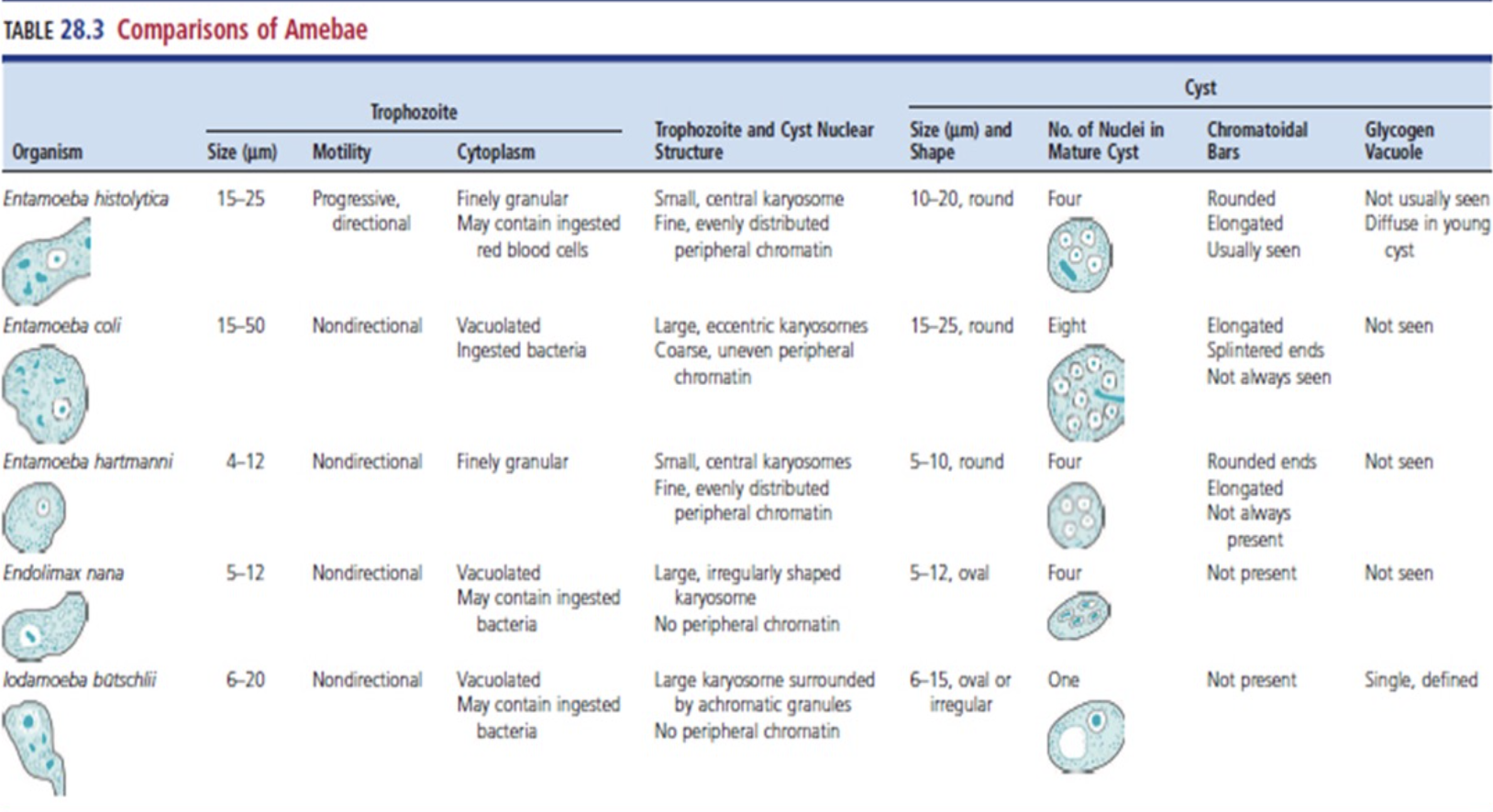 Comparison of Amebae